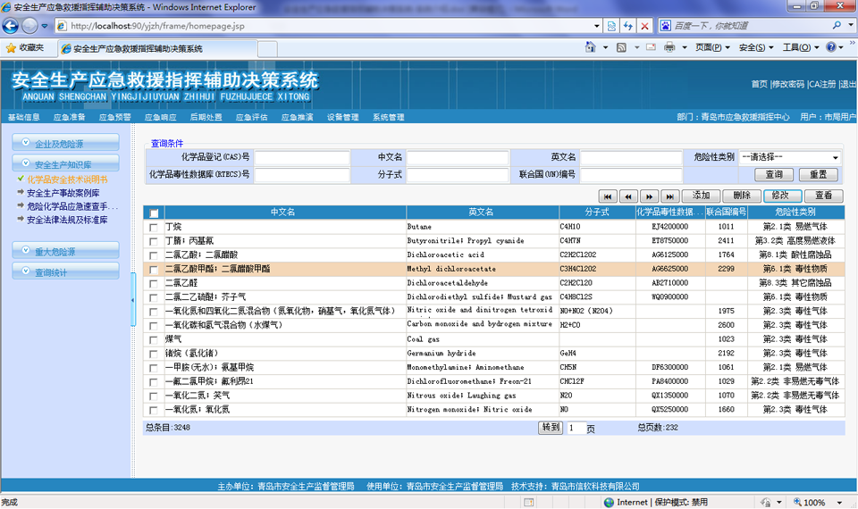 按照【GB 16483-2000 化學品安全技術說明書編寫規定】進行危險化學品信息采編,并導入常見化學品3000多條數據。