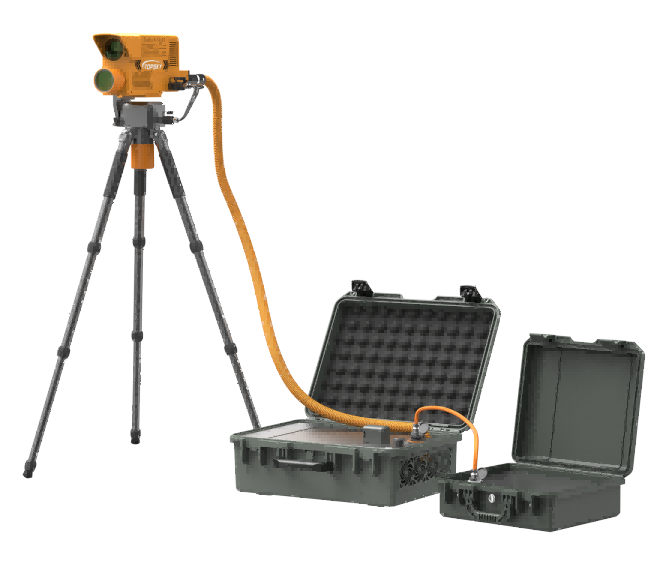 光學(xué)破拆裝置內(nèi)置高能光纖激光器,能夠從地面發(fā)射激光對(duì)鋼板、鋁板、鋼筋、彩鋼瓦、樹木、塑料、馬蜂窩等進(jìn)行遠(yuǎn)距離切割清除。
