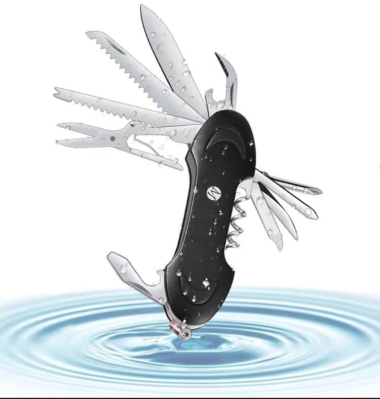 多功能刀又常稱為多功能戶外刀或萬用刀,是含有許多工具在一個刀身上的折疊小刀。多功能刀的組合工具不僅表現在品種上,同時還在于巧妙的組合在同一種工具上,使有限的工具發揮更多的實功能。一把普通的多功能刀,一般都有主刀、小刀、剪刀、開瓶器、木鋸、小改錐、拔木塞鉆、牙簽、小鑷子等工具。而在一些工具上還設計了多種功用。