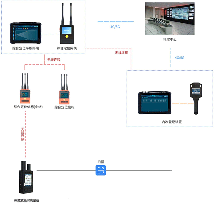 集消防員定位、呼救搜救、內攻信息登記、個人輻射劑量監 測等功能于一體,采用自主研發的 MESH 自組網與 4G/5G 雙通道傳輸技術, 提升了信息交互、數據傳輸的可靠性。用于核輻射事故救援或處置現場,個人輻射劑量率和累積劑量監測,具備無線傳輸功能和定位功能系統操作簡單,功能強大,性能優異,實用性強。可以極大程度的保障戰斗人員的人身安全。