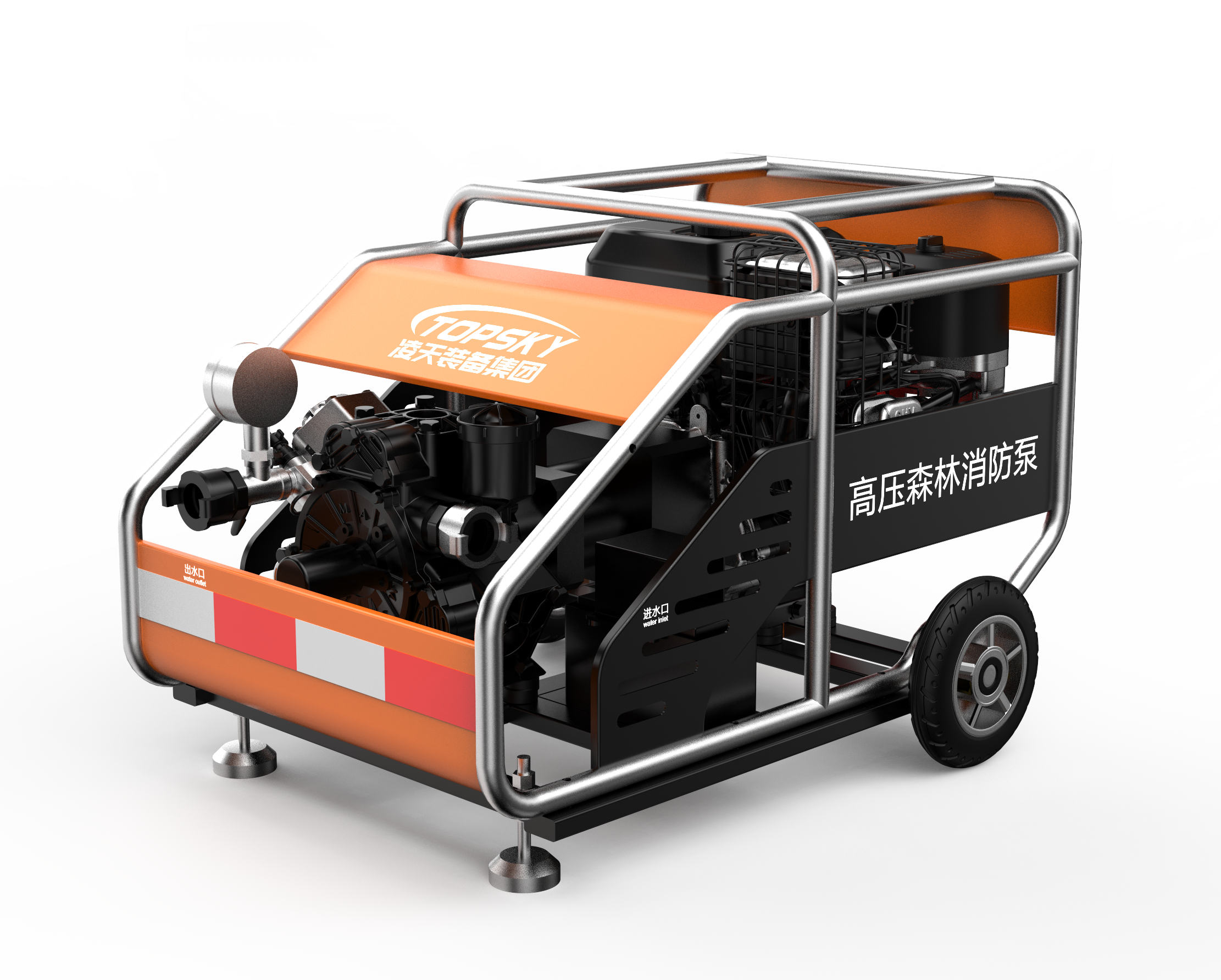TSP5.0高壓森林消防泵是我公司適應森林消防特殊的工作環境開發出來微型發動機靜態渦輪增壓裝置,實現了同排量發動機節能環保、輸出穩定、動力強勁、超長工作等優點,可使發動機在同等排量下增加1.5倍以上的動力,使水泵的流量更大,揚程更高,重量更輕、輸送距離更遠,是安裝普通發動機做不到的。泵組采用了發動機及隔膜泵,整個泵組重量輕,結構緊湊、占地面積小、穩定性好,采用手臺式+手拉式相結合,便于攜帶,操作簡單使用人員只需簡單培訓即可熟練操作。可用于森林滅火中遠距離輸送水源到火場進行滅火,遠程輸送高壓森林消防泵也適合于中小城鎮農村廠礦等消防車不能及時到達或無法深入到火災中心的消防滅火
