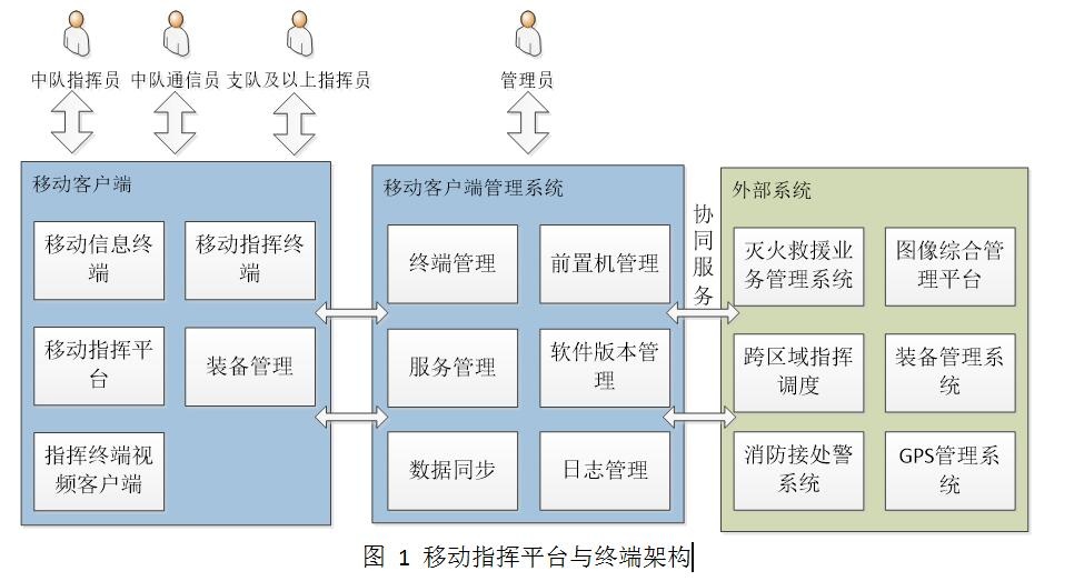 移動指揮平臺及終端與指揮網現有的業務管理系統、跨區域指揮調度系統、消防接處警系統、圖像綜合管理平臺、裝備管理系統以及GPS管理系統對接,實現了消息的互通,整體架構如下圖所示: