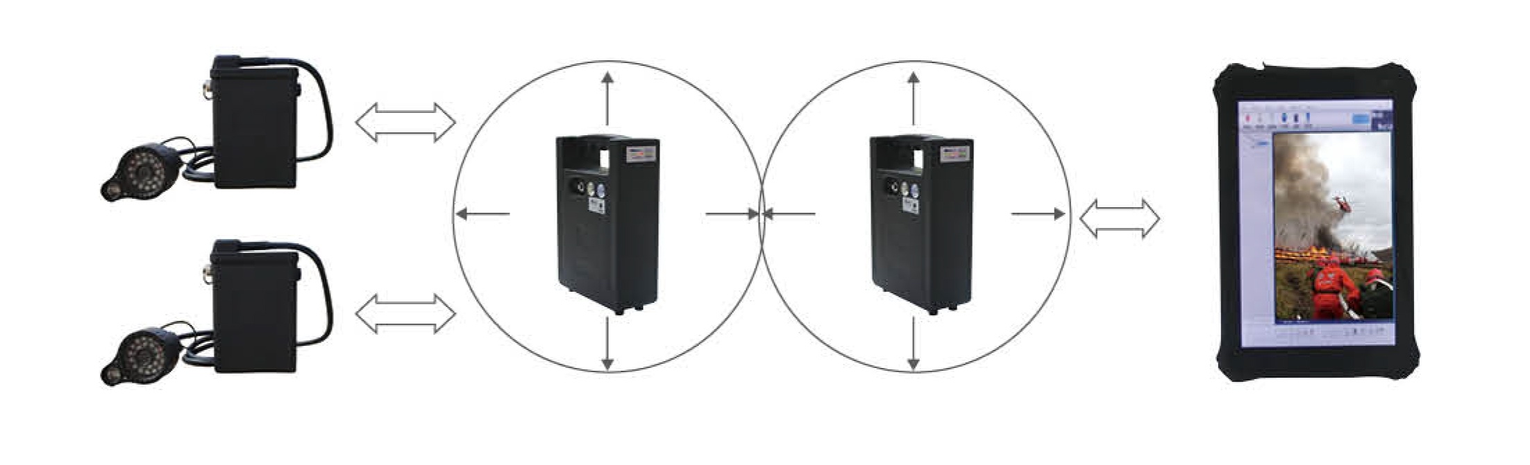 該裝置采用無線連接方式的信號中繼與傳輸,應(yīng)急通信網(wǎng)絡(luò)的通信距離可達(dá)20公里。無線通信網(wǎng)絡(luò)采用自組織、自愈合方式快速形成多跳鏈狀或網(wǎng)狀網(wǎng)拓?fù)浣Y(jié)構(gòu),無線通信距離不小于2000米,具有快速部署、高帶寬、低時延、可靠性強(qiáng)等特點(diǎn)。井下救援人員或工作人員,通過佩戴礦用本安型平板計算機(jī)、配套的低照度攝像頭自帶語音通話、無線中繼器、多參數(shù)測定儀等裝備,將現(xiàn)場的實(shí)時圖像、語音、環(huán)境參數(shù)等信息實(shí)時回傳到指揮平臺,調(diào)度指揮人員可以實(shí)時了解現(xiàn)場情況,并對現(xiàn)場人員進(jìn)行調(diào)度指揮。