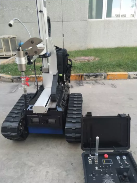 破拆機器人,也可用于遠程遙控偵察人難以達到的地形的一種機器人。機器人配備十字滑臺,靈活調動工具的工作位置,可加載手持式切割機,還可以加載獨立電動液壓工具其包括:微型開門器、微型擴張器、微型剪切器之間可以靈活更換,底盤采用履帶結構,能適應各種地形快速作戰部署。