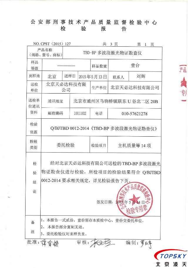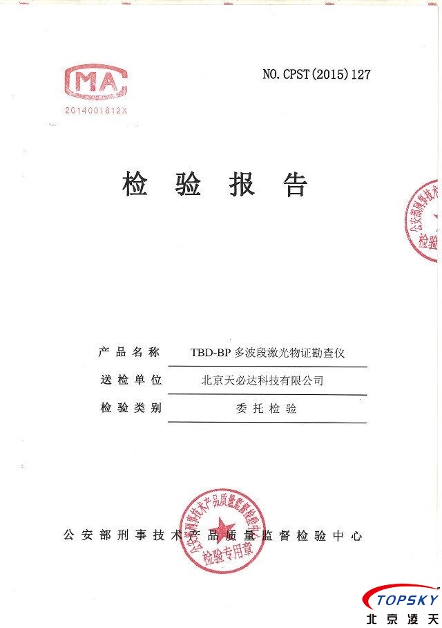 北京天必達自主研發(fā)多波段激光物證勘察儀取得公安部檢測報告