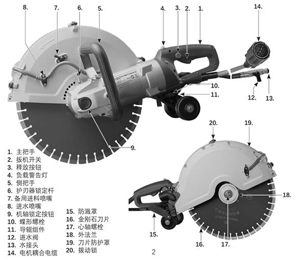 406mm (16") 濕式切石機,具有6600W 高頻永磁同步馬達,提供最大150mm 切深,并且可以做平切功能。