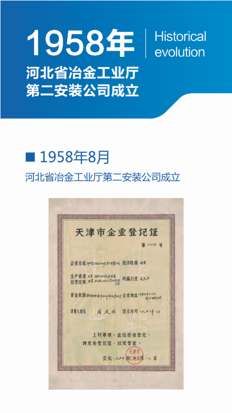 1958年河北省冶金工業(yè)廳第二安裝公司成立