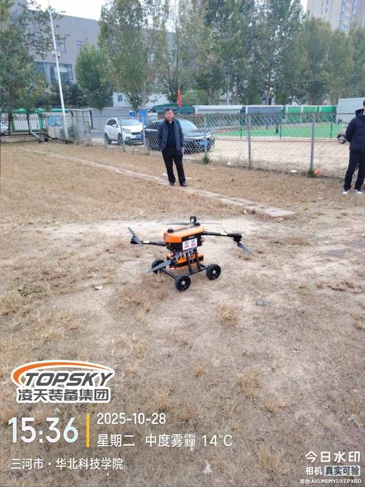 本無人機為北京凌天智能裝備集團研發的多用途陸空兩棲無人機平臺,采用四旋翼機身設計,載重大,續航長,并且機體折疊標準化負載接口、集成航電系統,還支持選配雷達避障系統。同時,該無人機具備陸空兩棲功能,可以在地面行駛,行走系統可快拆。滿足消防滅火、應急教援、物資運輸、環境監測等不同場是的行業應用。