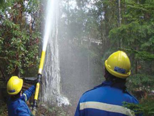 雙握把泡沫槍 可簡單、快速噴射泡沫控制現(xiàn)場火勢,打開混合腔的進(jìn)水,塞入泡 沫棒,擰緊密封蓋,連接進(jìn) 水管,就可以噴射泡沫,有 效的控制火勢。