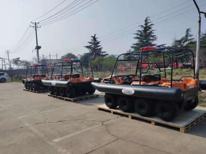 針對水災(zāi)頻發(fā)的地區(qū),水域救援任務(wù)必不可少。但往往洪澇災(zāi)害、城市內(nèi)澇往往伴隨著惡劣的天氣和崎嶇的地形,沖鋒舟需要多次搭載不同交通工具并數(shù)次轉(zhuǎn)移,水陸兩棲全地形車可以輕松通過水淹、泥濘、沼澤等環(huán)境,無需人力搬運(yùn),實(shí)現(xiàn)陸地駕駛和水中行走自由切換,以最快的時效抵達(dá)現(xiàn)場實(shí)施救援。