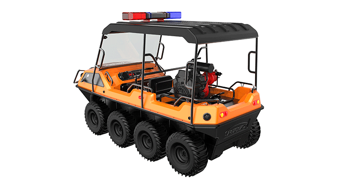 針對水災頻發的地區,水域救援任務必不可少。但往往洪澇災害、城市內澇往往伴隨著惡劣的天氣和崎嶇的地形,沖鋒舟需要多次搭載不同交通工具并數次轉移,森林消防水陸兩棲全地形車可以輕松通過水淹、泥濘、沼澤等環境,無需人力搬運,實現陸地駕駛和水中行走自由切換,以最快的時效抵達現場實施救援。