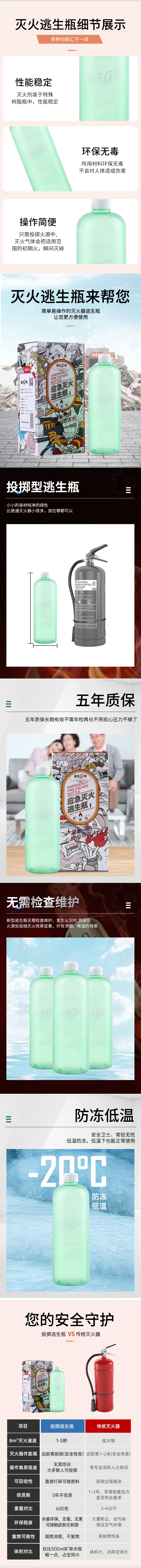 7)環(huán)保:原材采用純植物提取環(huán)保無(wú)毒、無(wú)腐蝕,殘留的物質(zhì)轉(zhuǎn)化為養(yǎng)分發(fā)酵滋養(yǎng)森林植被,瓶?jī)?nèi)裝有滅火劑PH值為中性,無(wú)腐蝕無(wú)污染。