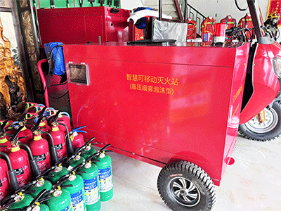 用于鄉村社區的一款小型可移動滅火站.此裝備是由動力機、水泡沫藥劑箱、高壓軟管、高壓噴射細霧槍、泡沫滅火劑、干粉滅火器、破拆工具組和載體車等組成。