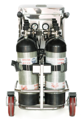 具有耐高溫、阻燃、絕緣、防腐、防水、氣密性好等性能。通過(guò)一組壓縮空氣瓶向呼吸器使用者長(zhǎng)時(shí)間提供空氣,可單人使用,也可同時(shí)供兩人使用。