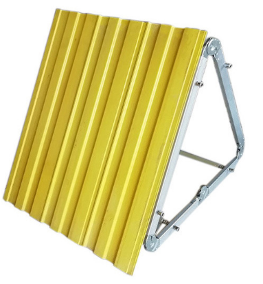 裝配式板壩防洪子堤,當(dāng)水位上升、有可能漫溢堤壩時(shí),可在堤頂上迅速搭接成防洪子堤。子堤由多個(gè)單元裝配而成;每個(gè)單元包括折疊擋水面板和可折疊的支撐角架兩部分。每組單元裝配完成之后,再通過(guò)肋板和緊固件裝配相互連接而成為一個(gè)完整的子堤。面板底部配有定位固定樁,可將子堤固定在堤頂之上。