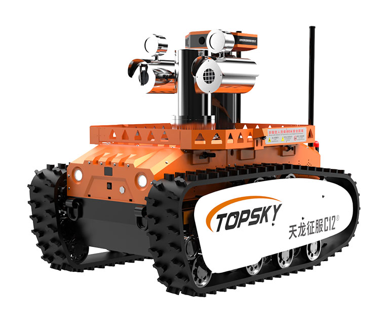 主要功能:履帶式防爆機器人底盤采用鋰電池電源作為動力源,使用無線遙控的方式遠距離操控,可搭載形式多樣,原地旋轉設計可使得運更靈活;具備音視頻偵察、有毒有害氣體偵察、災區環境偵察功能,對提高救援安全性、減少人員傷亡具有重要意義。