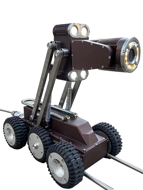 針對煤礦井下發生事故后,救援人員不能及時了解現場情況的問題,設計并研制了一種鉆孔救援機器人,該產品是由爬行器(攝像頭)、鉆孔自動(手動)盤線車、無線系統控制器 (電腦端)、電源適配器等部分組成,通過操作主控制機器人界面,可實現控制爬行器在孔內行走,并將釆集到的救援孔內部圖像通過線纜實時傳輸到主控制器進行實時監視,配合判圖軟件一鍵生成檢測報告。檢測系統還配有專業的控制軟件,可運行在windowslO系統上控制本套檢測機器人。可進行圖像存儲。監視圖像時如果發現人與物體,可以通過錄像或拍照記錄出來以便對其判斷、分析。在主控制器的顯示界面上,可以隨時了解爬行器的狀態,包括傾角、氣壓、距離、速度、平臺高度、日期等相關信息。該裝置也可用于其他地質鉆井探測中,基于礦山鉆孔救援探測需求,針對現有探測機器人信息探測范圍窄、探測距離較短、功能單一、無越障能力等問題,設計出礦山鉆孔救援探測機器人。